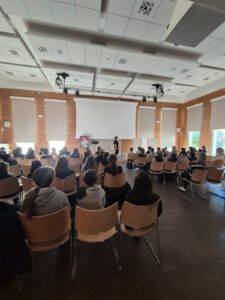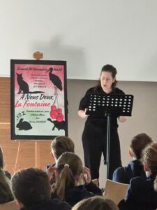 Les classes de 6ème ont applaudi “la dame du foyer”, Karine Bourgery, dans son spectacle A Nous deux La Fontaine ! en salle polyvalente, les 17 et 22 janvier 2025.