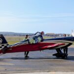 Accueillis par l’aspirant François, la première partie de la visite s’est déroulée lors de l’entraînement de l’Équipe de voltige de l’Armée de l’air et de l’espace (EVAAE). Cette équipe représente l’armée dans les compétitions de voltige et les divers meetings aériens en France et à l’international. Aux commandes de leurs Extra 330, les pilotes exécutent des enchaînements de figures particulièrement techniques, tout en encaissant de fortes accélérations, positives comme négatives.