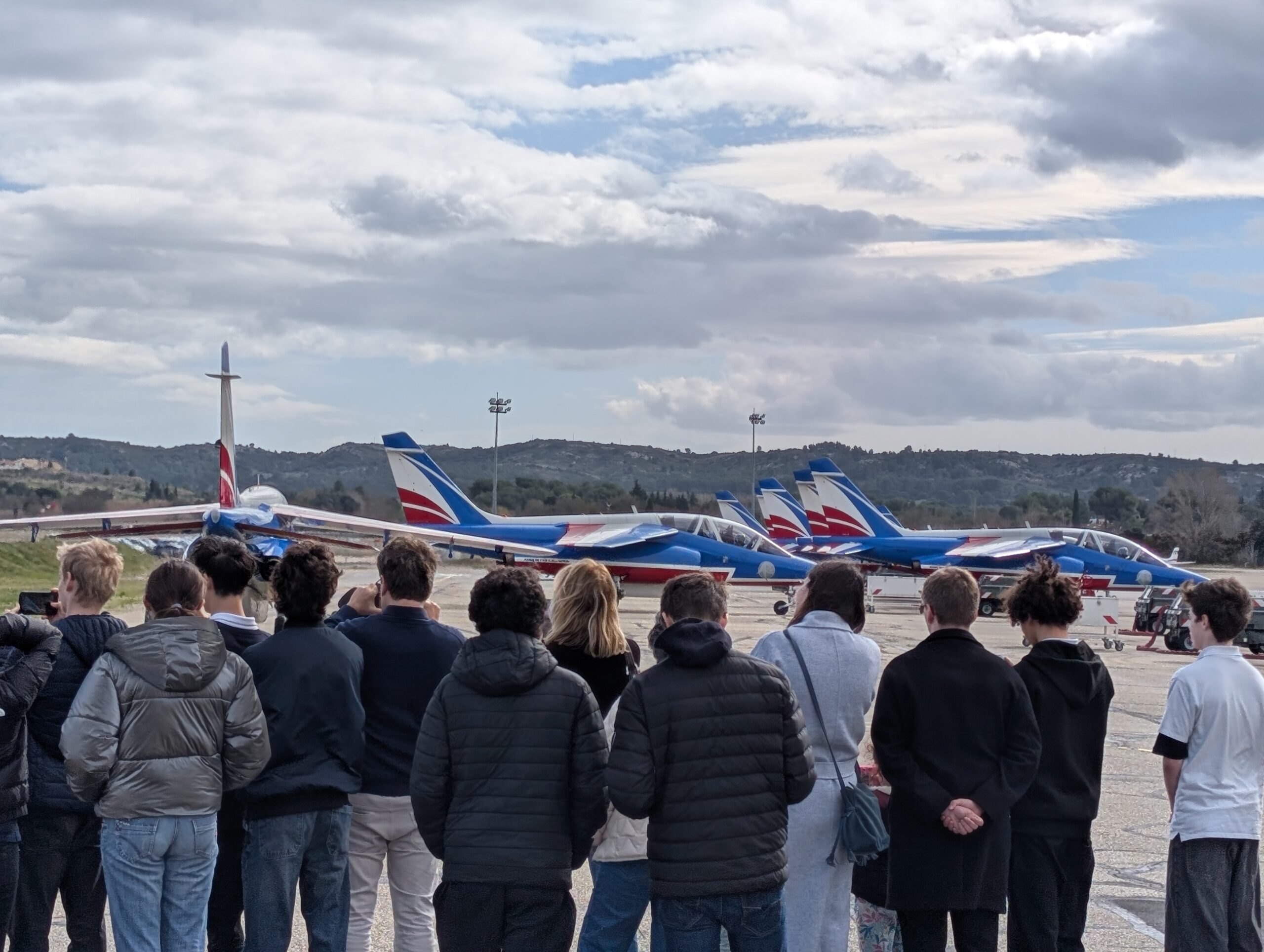 Les élèves du BIA (Brevet d’initiation à l’aéronautique) ont eu le privilège de passer une journée sur la base de l’Armée de l’air et de l’espace de Salon-de-Provence et d’assister aux entraînements de l’Équipe de voltige ainsi que de la célèbre Patrouille de France.