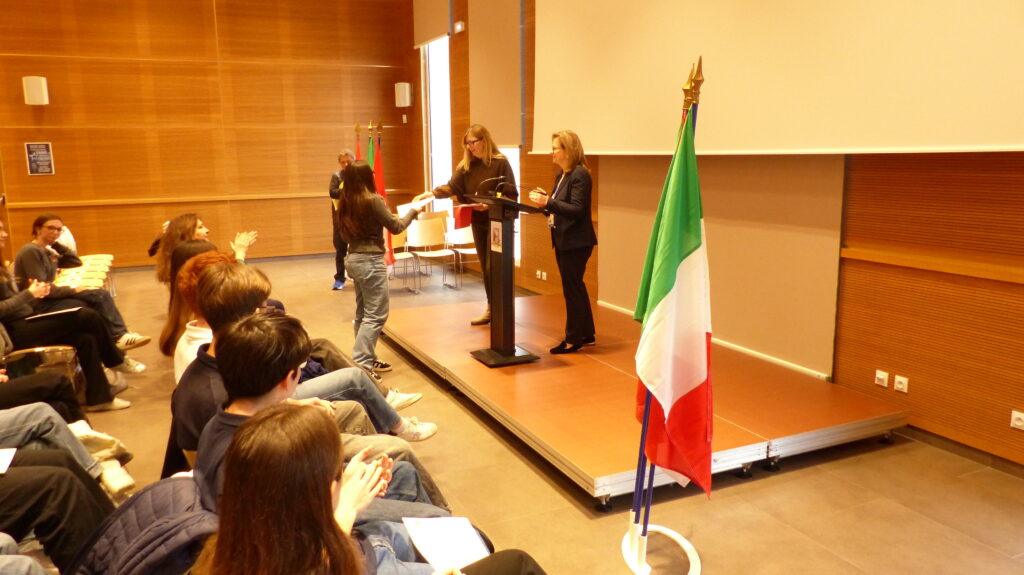 Madame Marianna GIULIANTE, Présidente du Coalcit (comitato per le attività linguistiche e culturali italiane) s’est déplacée dans notre établissement ce jour pour remettre les diplômes à nos élèves ayant réussi l’examen.