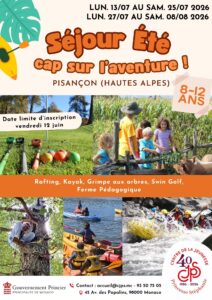 Ci-dessous tous les renseignements pour les séjours d’été pour les enfants de 8 à 12 ans : (date limite d’inscription 12 juin)